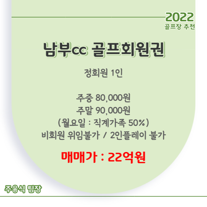 #남부cc 현존하는 거래 가능 #골프회원권 중에서 가장 초고가대를 유지하는 곳 입니다.